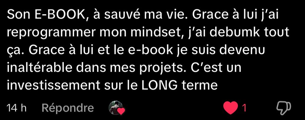 À travers 7 chapitres et 70 pages, je te partage les principes et stratégies qui m'ont permis de transformer ma réalité, ma discipline, mon mindset, mes finances et mon physique.