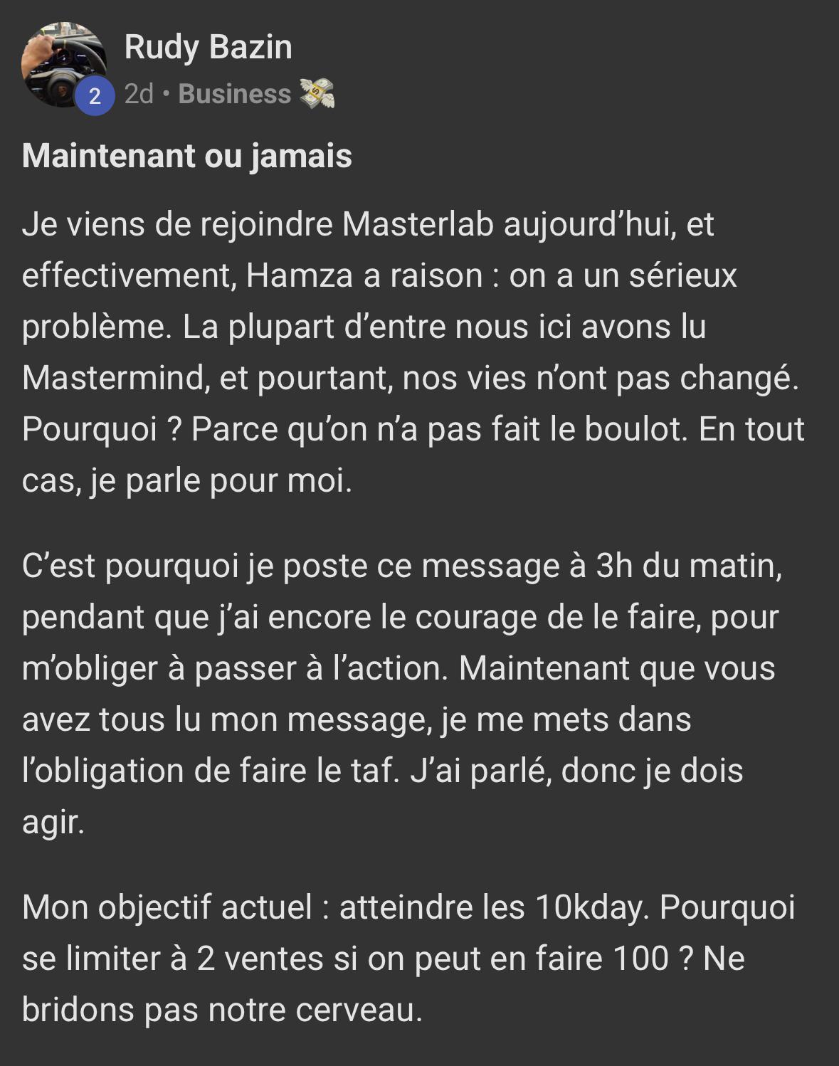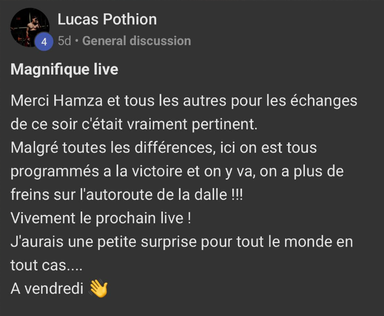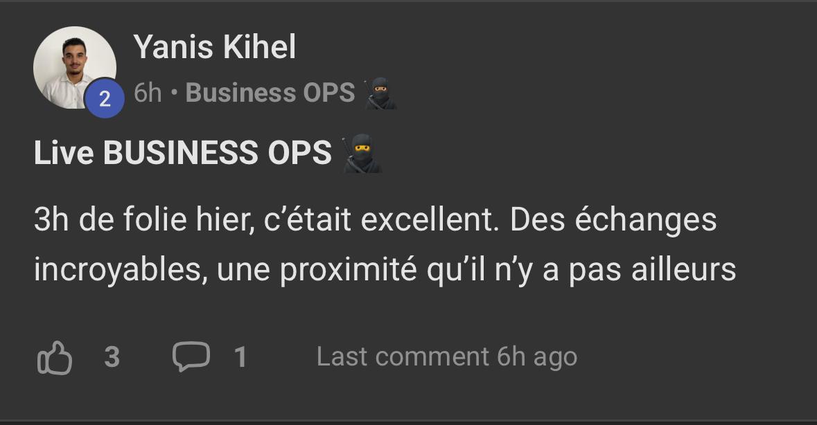 Chaque semaine, je prends 3 humains en live et je leur montre exactement comment gagner en fonction de leur réalité. C'est du concret, du cas par cas.